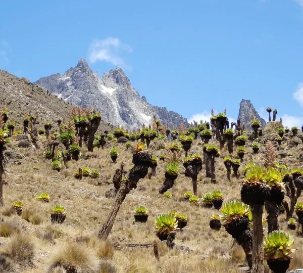 Chogoria Route: Explore the pristine beauty of Mount Kenya’s eastern side, with lush forests, alpine moorlands, and stunning views of the Gorges Valley.